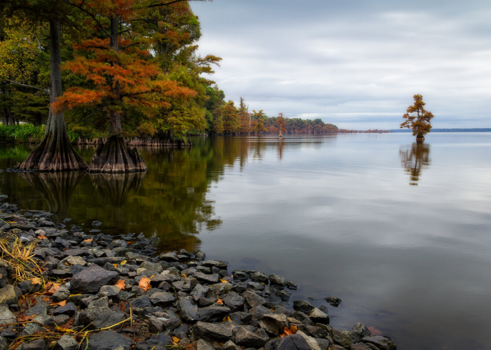 To help understand areas with the lowest educational attainment, Stacker used data from the 2014–2018 American Community Survey to construct a weighted index that measures the relative education level for every county in the United States. This index evaluates each county’s over-25 population across seven educational tiers, ranging from individuals not educated past eighth grade to those with graduate or professional degrees. For each segment of these tiers, a points-based indexing system was applied in direct proportion to the estimated years of schooling for each level of educational attainment. Lastly, the full range of index scores was normalized to a 0 to 100 scale, with 100 representing the most educated county in the United States.