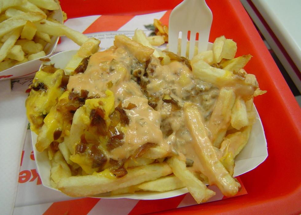 In-N-Out is famous for its secret menu which came about because burger fans had to get creative when the only items on the official menu are “Hamburger, “Cheeseburger,” and “Double-Double.” While everyone knows about the Animal-Style Burger, few are aware that fries can also be served Animal-Style just by asking. Animal-Style Fries come topped with a slice of American cheese, grilled onions, and a heaping serving of spread (aka thousand island dressing). Those truly in the know add chopped chilies to seriously amp up the spice level.