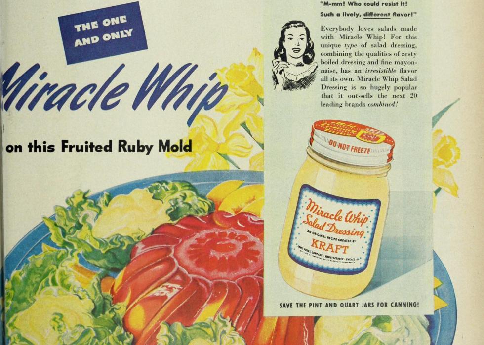 While large swaths of the country struggled to make ends meet, the Great Depression led to a boon of culinary creativity. Kraft created Miracle Whip as a way to offset the struggling mayonnaise market it had dominated until the market crashed, and people began making their own at home. Though Miracle Whip is mayonnaise-eque, it's technically sold as a salad dressing. By the 1950s, six out of every 10 salad dressings sold were Miracle Whip.
