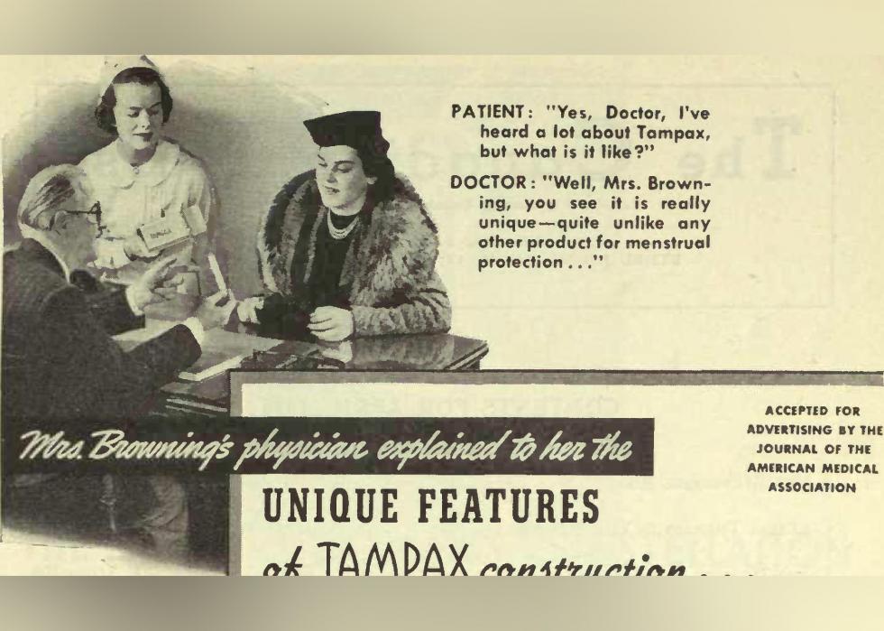 Though Dr. Earle Haas first invented the cylindrical cardboard applicator tampon in 1929, it wasn't until 1936—when businesswoman Gertrude Tenderich bought the patent and launched Tampax—that the modern tampon spread across America. While there were other tampons on the market, perhaps the most important innovation aside from the cardboard applicator was the marketing. Tampax's 1936 ad in the American Weekly said, “Your doctor will be the first to tell you that Tampax is the most natural and the most hygienic method of sanitary protection... accepted for advertising by the American Medical Association,” and soon it became a hit.