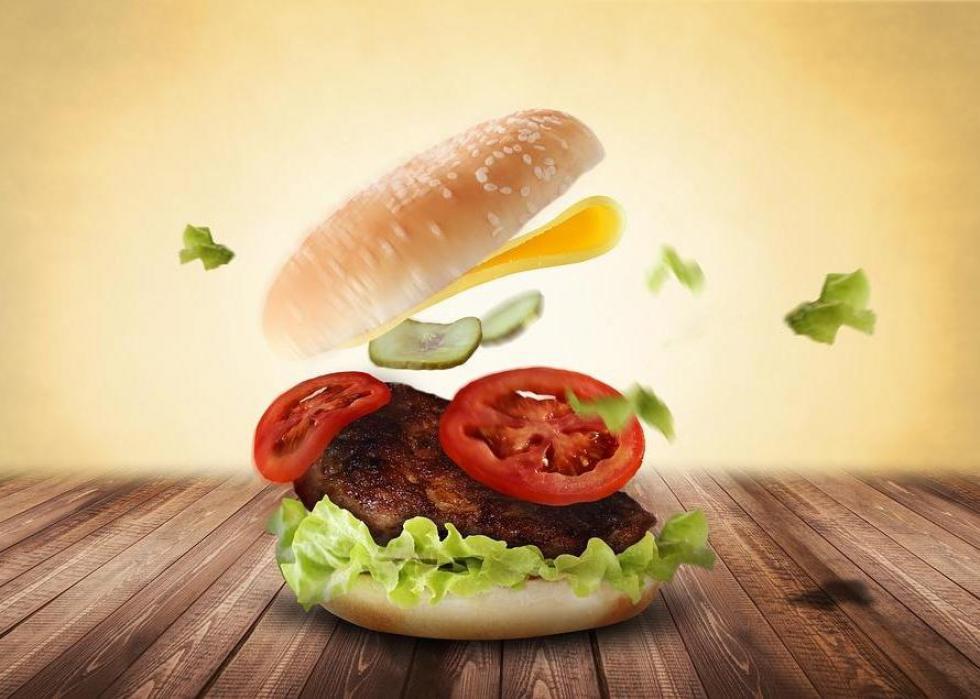 It'll take about 660 gallons of water to make a third-pound hamburger. Aside from the meat, which accounts for most of that number, water is used to produce the bun and the toppings.