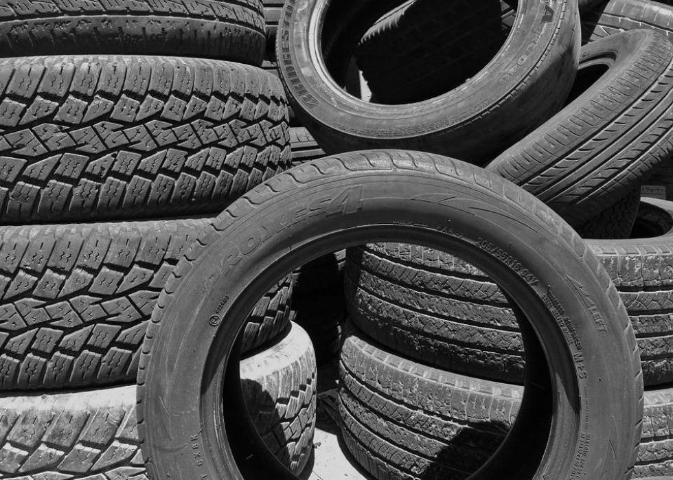 It takes around 2,074 gallons of water to produce a set of car tires. The vast majority of tires are made from synthetic rubber, which needs water to be produced. During tire production, water is also used to create hot steam that molds the tire itself. To save water, people can use bikes with smaller tires as their primary transportation.