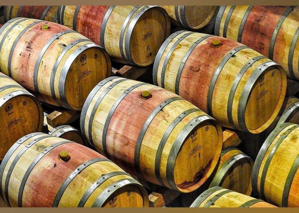 Thirsty grapes lead to thirsty wine—a gallon of wine takes about 872 gallons of water to make. That number includes the water needed to grow grapes as well as the water used to sanitize equipment in the wine production process.