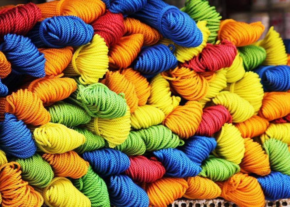 Producing a pound of wool requires about 101 gallons of water. Sheep need water to survive, and a significant amount of water is needed to dye wool.