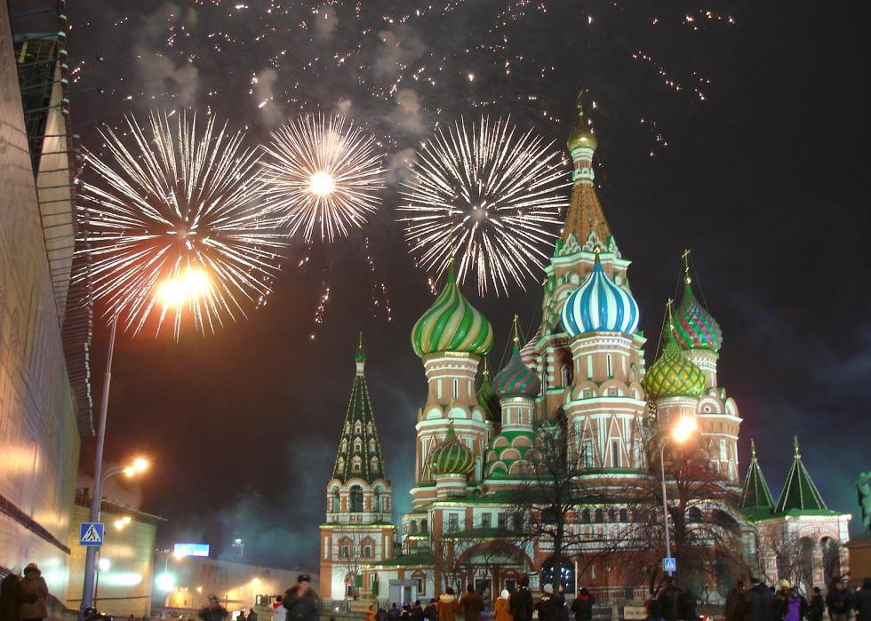 Thousands of revelers crowd into Moscow’s Red Square every year, eager to get a good view of the fireworks over St. Basil’s Cathedral. If you don’t want to ring in the new year with several hundred new friends, head to another of the 30 venues hosting fireworks displays.