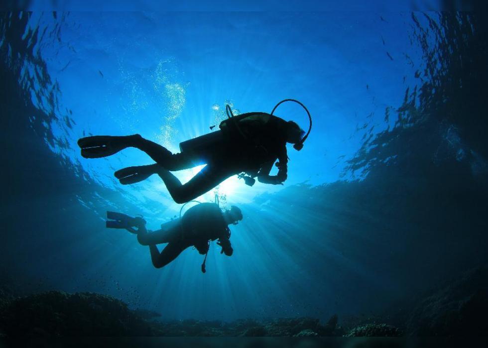 If regular scuba diving isn’t enough to get the heart pumping, doing it at night while tied to the bottom of a boat, suspended in pitch-black water surely will. Even as far as night dives go, the excursion into the 5,000-foot-deep channel, which involves an underwater parachute, is exceptionally extreme. During the dives, people will get the chance to see a variety of pelagic marine life and sea creatures. Onshore, people can also take part in adventures like helicopter volcano tours or summiting Mauna Kea, the world’s tallest mountain as measured from the seafloor.