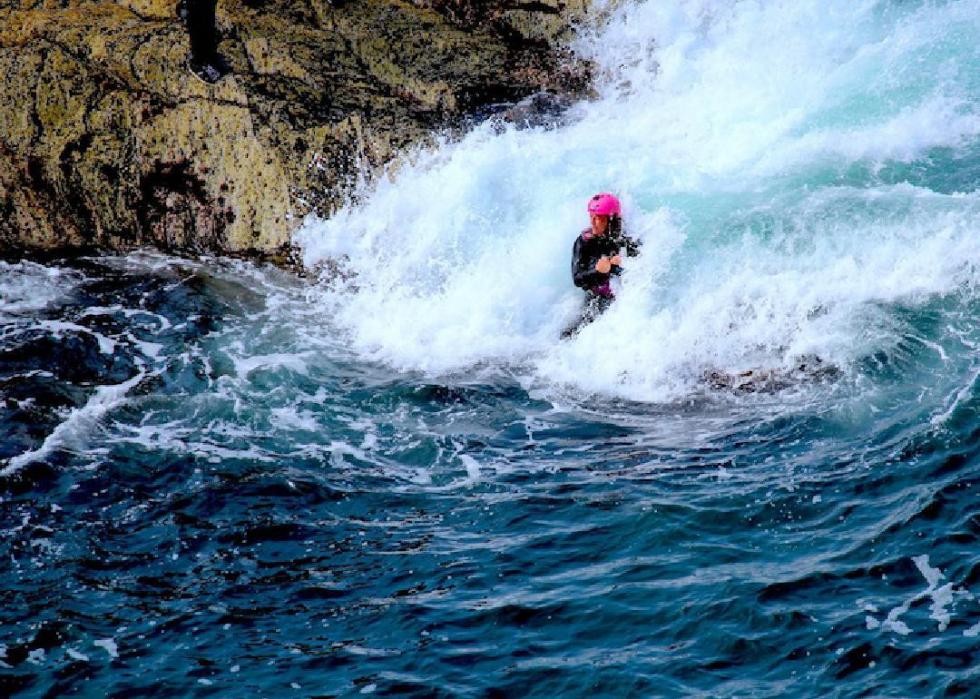 Sometimes called “extreme rock pooling,” coasteering involves scrambling along rock faces in the intertidal zone using a combination of swimming, climbing, and jumping. The activity originated from surfers in Pembrokeshire, Wales, and the region remains one of the best places in the world to do it. Travelers can also visit castles, tour theme parks, and watch whales.