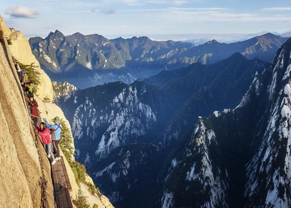 Comprising a series of narrow wooden planks jutting out from the side of a cliff roughly 2,000 feet in the air, the Huashan Trail leading to the summit of Mount Huashan, China is one of the most extreme hiking trails in the world. The path up to Mount Huashan, which is one of China’s five sacred mountains, is 7.5 miles long and rises almost 6,000 feet.