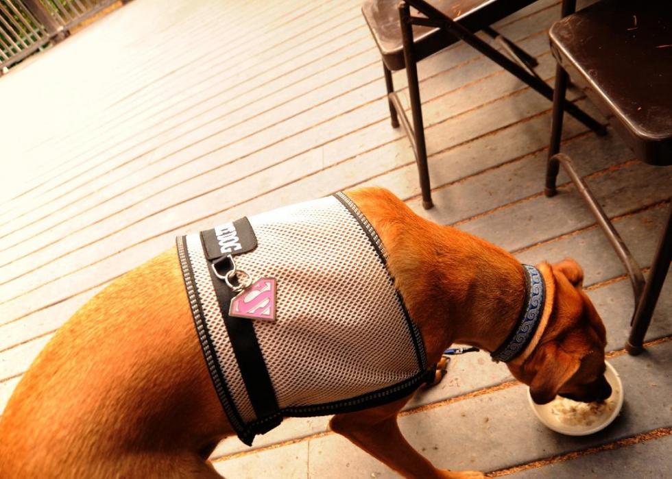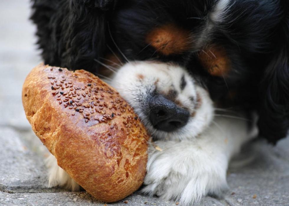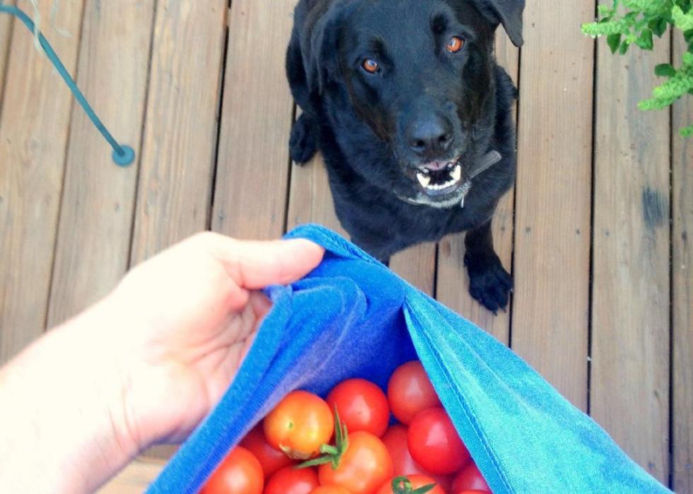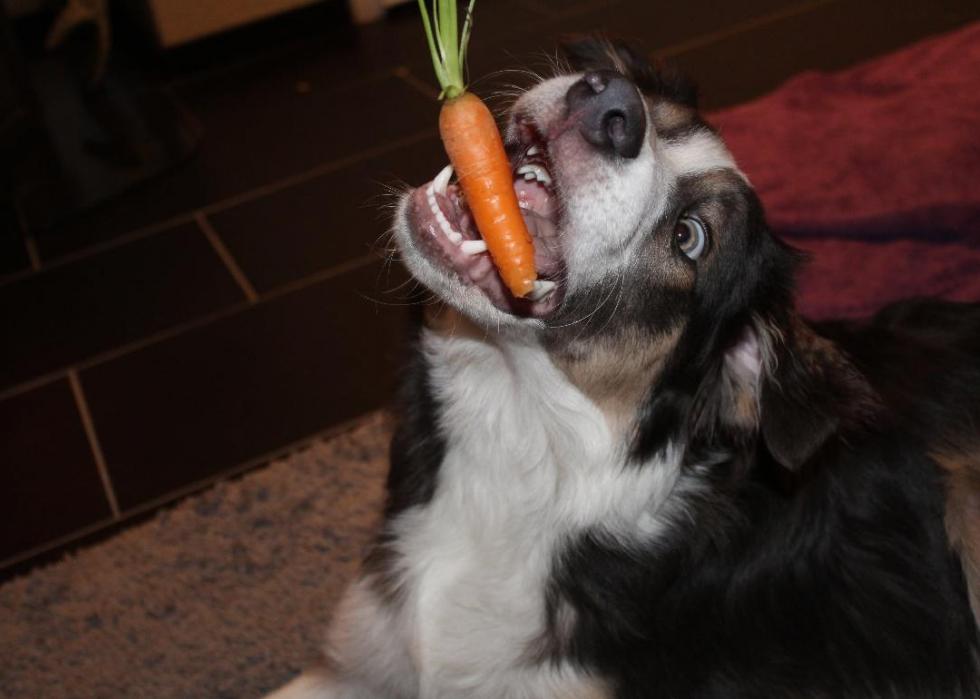 Using a variety of authoritative, expert-backed sources, Stacker independently compiled a list of 25 human foods dogs can eat, and 25 human foods dogs should not eat, for a total of 50 slides. The slides alternate between the “yes” and “no” foods, but otherwise are not ranked in any particular order. It's valuable to note that overall moderation is key—in small doses, some "no" foods on this list may not affect your dog, but this list highlights food that should be avoided.