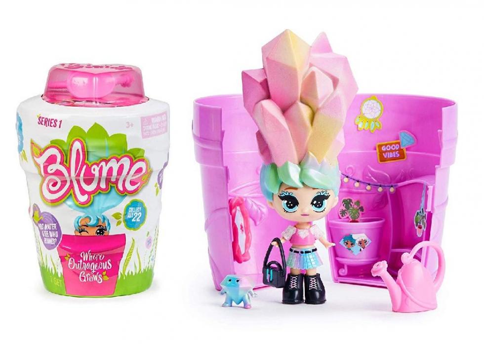 Packaged in a small plastic flower pot playset, Skyrocket Blume dolls reveal themselves after water is added to the “dirt” on top. Every Blume doll, whether rare or super-rare, has a distinct over-the-top hairstyle and personality. All the dolls come with their own fashion outfits and accessories, which can be shared among a collection.
