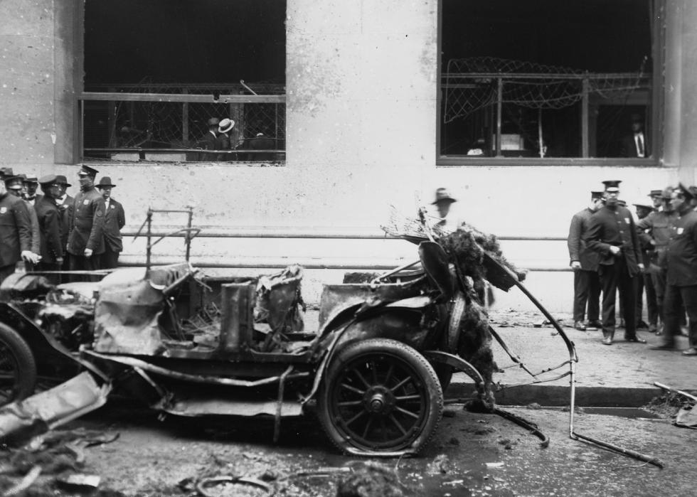 In 1920, a wagon parked outside of a Wall Street building in the middle of the night exploded. Anarchists were blamed for the more than 30 resulting deaths, but the FBI never found anyone specific to arrest for the crime.