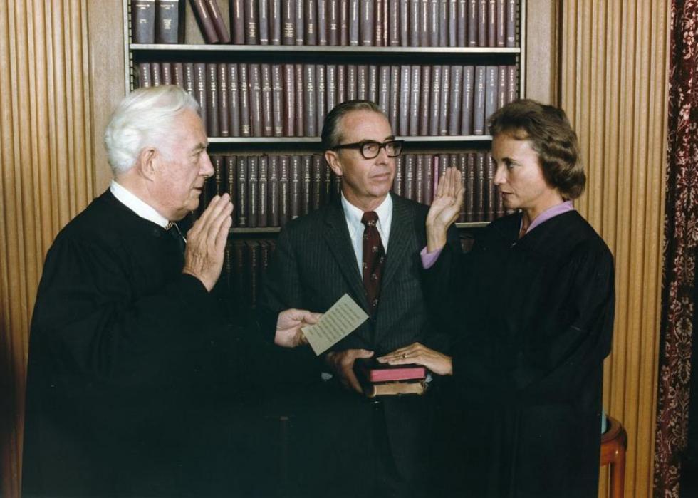 [Pictured: Sandra Day O'Connor being sworn in as Supreme Court justice by Chief Justice Warren Burger.]