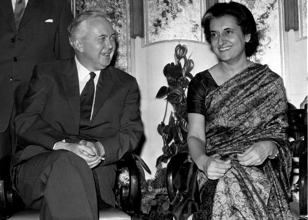 [Pictured: Indian Prime Minister Indira Gandhi meets British Prime Minister Harold Wilson.]