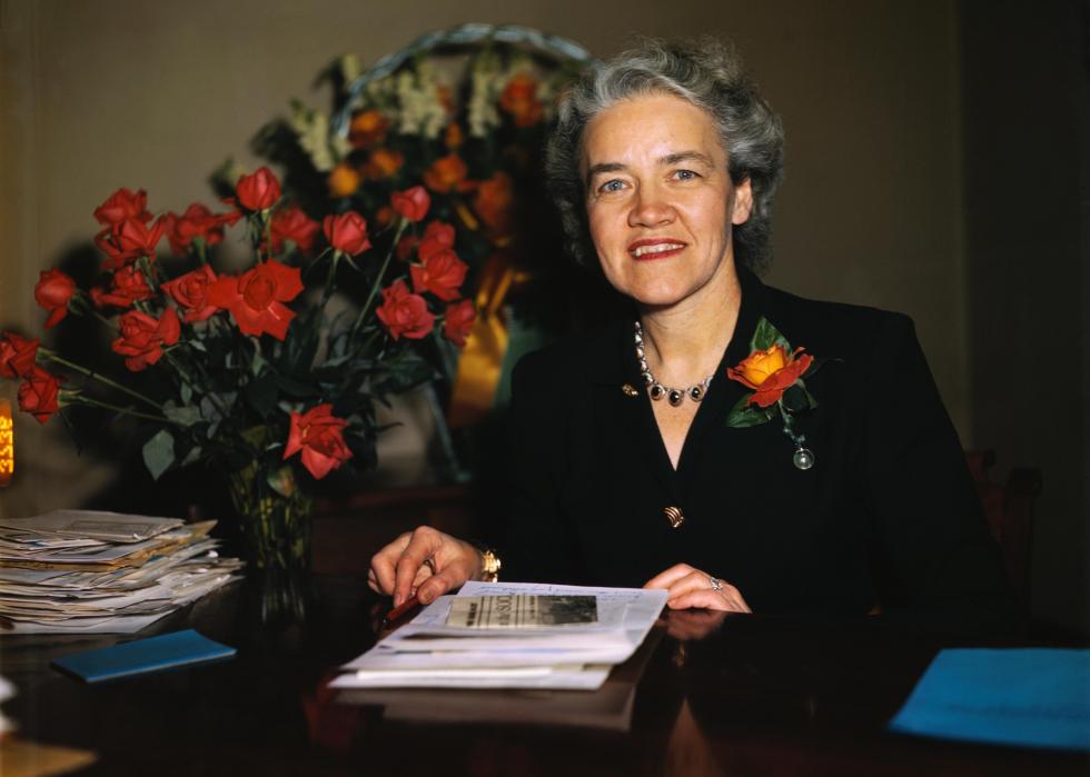 Born in 1882, Francis Perkins was head of the New York Consumers’ League before she set a precedent for all women and became the first to hold a Cabinet position as the U.S. secretary of labor, only 13 years after women were granted the right to vote. Perkins was appointed by Franklin Roosevelt and served for 12 years, the longest by a labor minister. One of her many achievements includes playing a role in ratifying the Social Security Act in 1935 to help retired, injured, and unemployed workers.