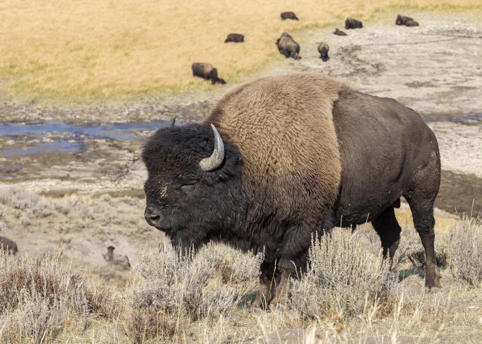 The nation's largest mammal has the official designation of Wyoming’s state mammal. Males can stand up to 6 feet tall and weigh up to a ton. They can interbreed with cattle, and the only genetically pure population lives in Yellowstone National Park in Wyoming.