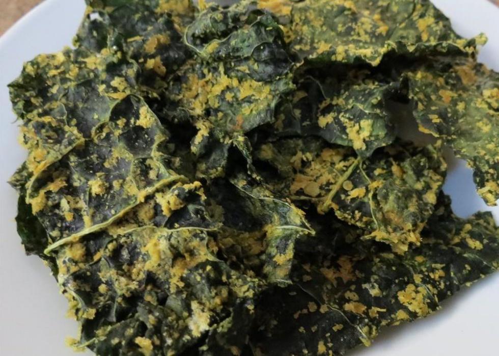 These “cheesy kale chips” don’t actually include any real cheese. Instead, the vegan snack is made with nutritional yeast, which gives it that classic cheese taste without the added calories or animal products. While they take some time to make, the finished product is well worth it, according to reviewers.