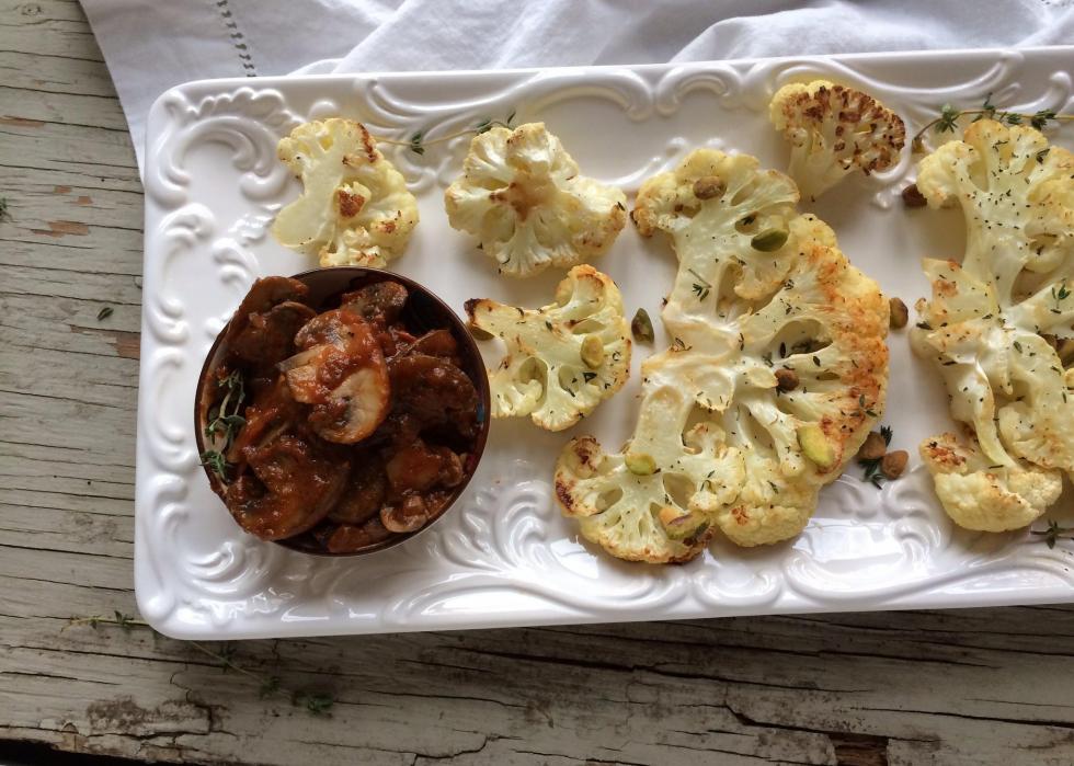 These cauliflower steaks make a great alternative to a classic meat entree. Doused in olive oil and lightly seasoned, these oven-roasted steaks are the perfect amount of crispy. The recipe is simple enough that you can dip in your favorite sauce without worrying about clashing flavor profiles.