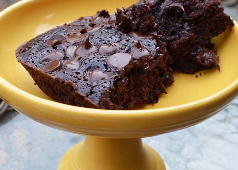 These “3-ingredient cookies” are perhaps the healthiest dessert option on our list. Made with bananas, oats, and chocolate chips, they contain very little added sugar. The cookies have a gooey texture when baked, so if you’re a crispy cookie fan, you might consider skipping this recipe.