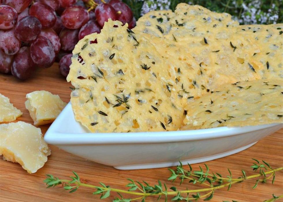 These “Parmesan thyme crisps” are perfect for those following a keto diet. Made with shredded parmesan cheese and fresh thyme leaves, the high-fat, moderate-protein, and low-carb snacks come together in a few minutes. Even better, you can switch up the flavor profile a bit by mixing in different herbs and spices.