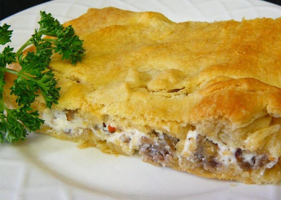 This “simple sausage casserole” is made with a crescent roll crust, and would serve as the perfect weekend brunch entree. Slices of the sausage and cream-cheese stuffed dish reheat well in the microwave, meaning that leftovers could easily last you all week.