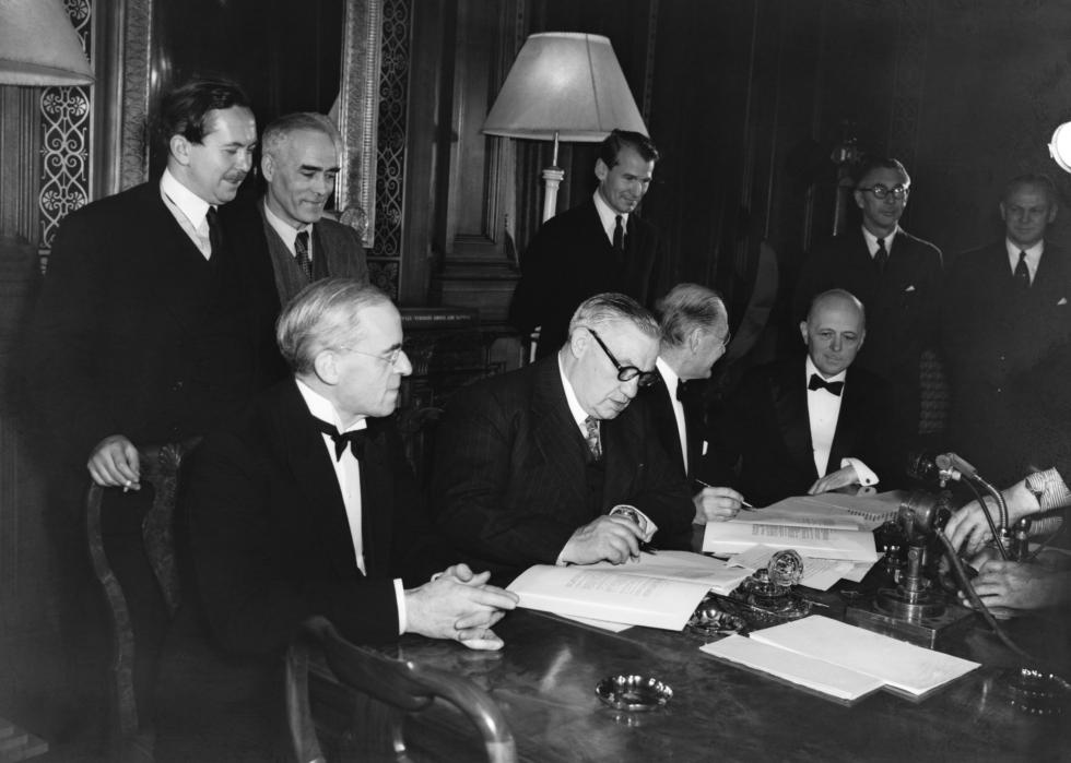 President Franklin D. Roosevelt established the March of Dimes, an organization to help fight infant polio, in January. The Treaty of Munich was signed in September, forcing Czechoslovakia to give territory to Germany.