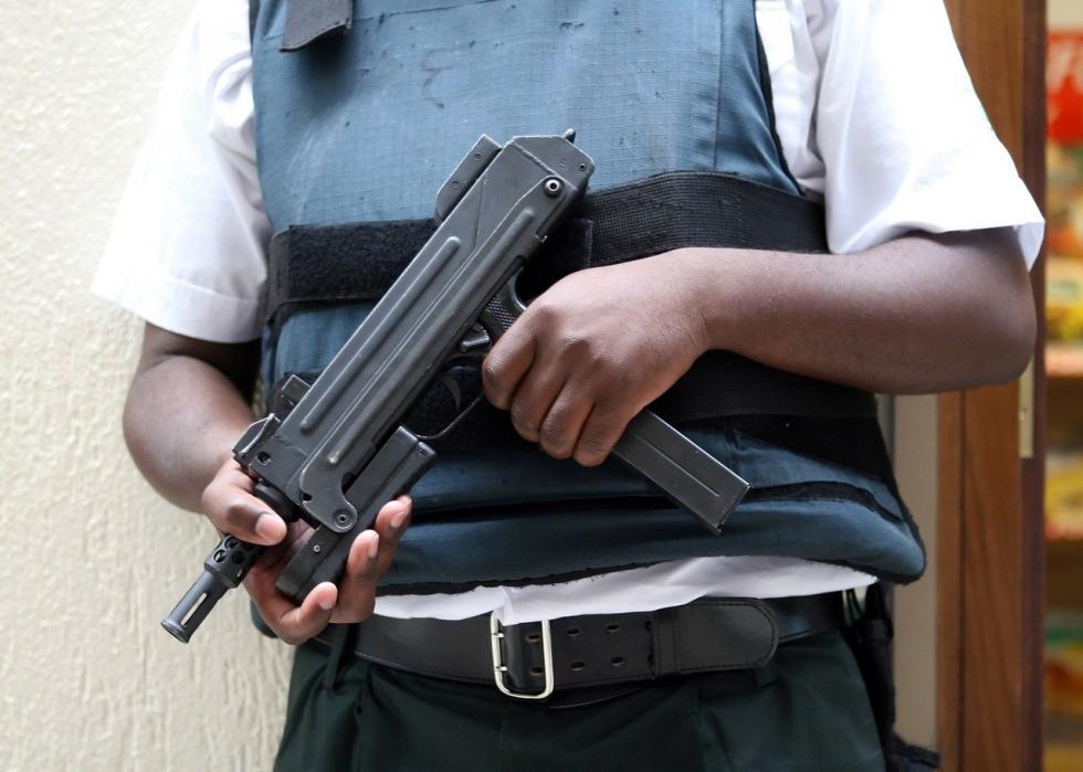 There are more guns than people in America, with 120.5 firearms per 100 U.S. citizens, according to Vox, making the country more prone to gun violence. As the leading country in gun ownership (with Yemen second), the U.S. owns almost half of all firearms globally, at around 45%.