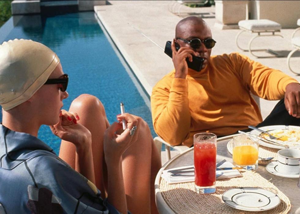 This intimidating mob boss and his young wife lounge by the pool in this 1994 cult classic directed by Quentin Tarantino. The film is famously portrayed with its scenes out of chronological order and has had a lasting impact on independent cinema and pop culture.