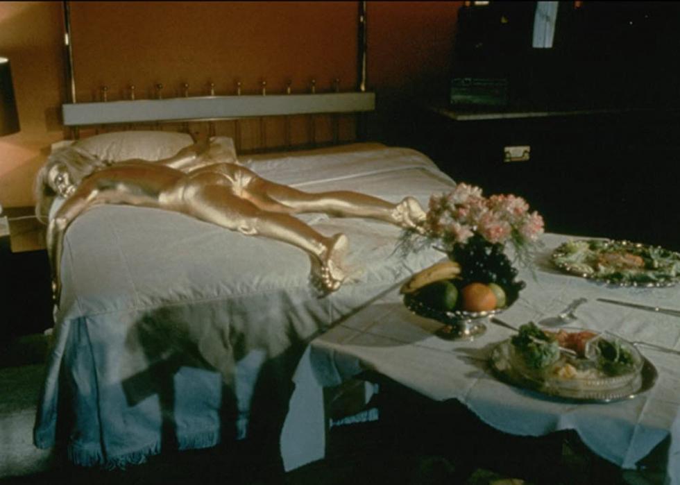 Jill Masterson (Shirley Eaton) aids Bond villain, the titular “Goldfinger,” in cheating at a game of cards with none other than James Bond himself. But after Bond catches Goldfinger in the act and seduces Jill, she’s painted entirely in gold for her treason and subsequently suffocates to death. This Sean Connery-starring iteration of “James Bond” was the first in the franchise to win an Oscar.