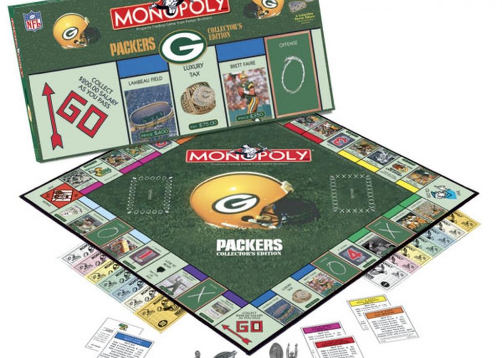 This version of Monopoly looks like a football field, with a yellow Green Bay Packers’ helmet in the center. It features some of the team’s classic moments, such as Super Bowl XXXI and the game played against the Chicago Bears on Nov. 5,1989; its players such as Brett Favre, Bart Starr, Earl “Curly” Lambeau, and Gilbert Brown; and legendary coach Vince Lombardi.