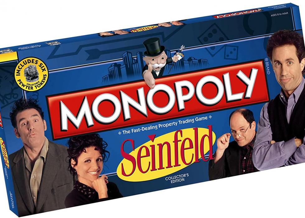 The popular sitcom “Seinfeld” is played on the Monopoly board with the show’s unforgettable characters, Jerry, Elaine, George, and Kramer. Players draw yadda yadda yadda cards and land on Jerry’s Apartment, Monk’s Restaurant, The Chinese Restaurant, and the Non-fat Yogurt Shop. The New York City Subway and Kramer’s Central Park Carriage replace railroads. The bills include “Seinfeld” quotes, including “No soup for you.”