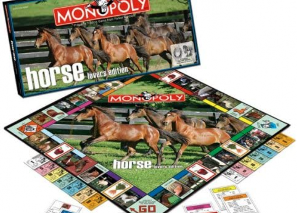 The name of this game says it all. It features pictures of the most prized breeds that horse lovers can buy and sell as they make deals in the world of equestrians. The tokens are horse themed too—a saddle, oats, a horse trailer, a horse shoe, riding boots, a bale of hay, and a horse.